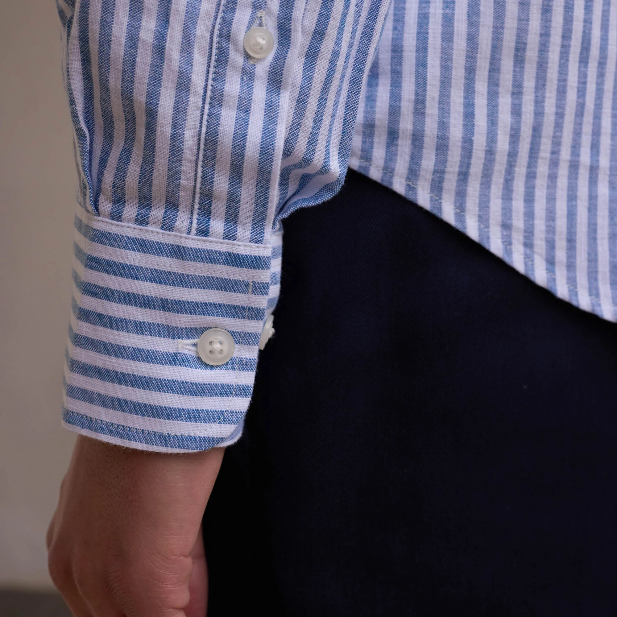 Chemise en coton à rayures blanches et bleues